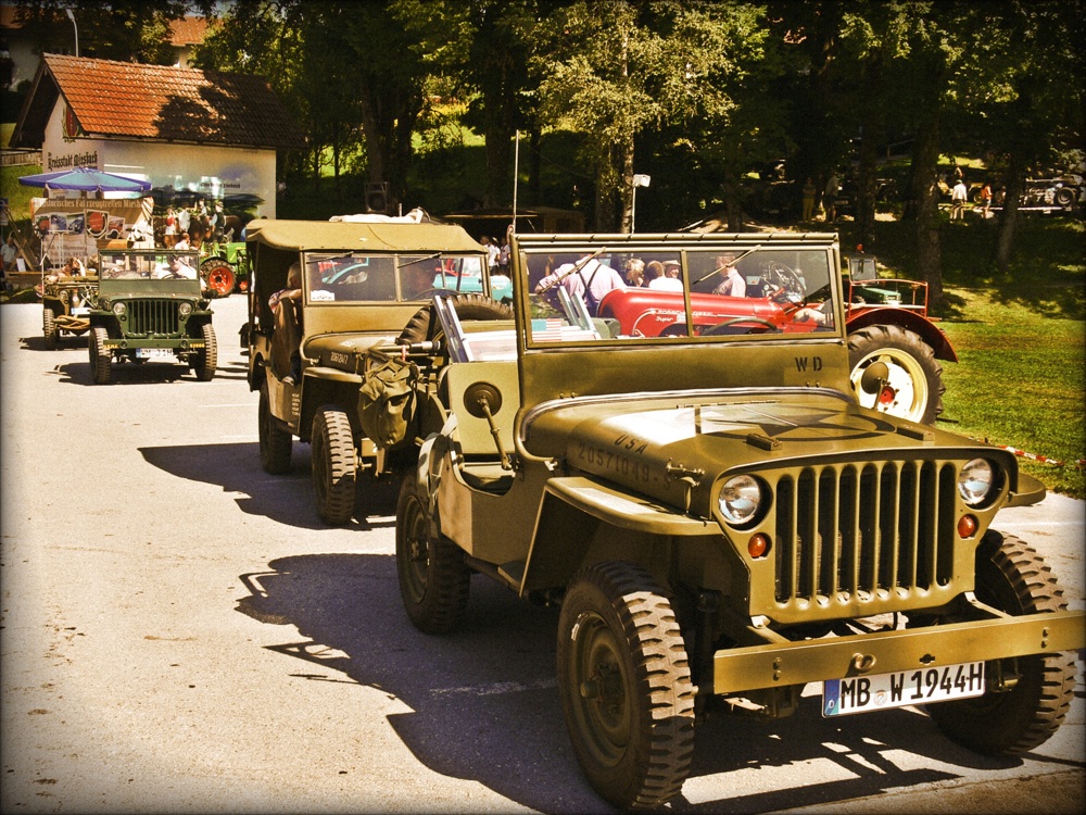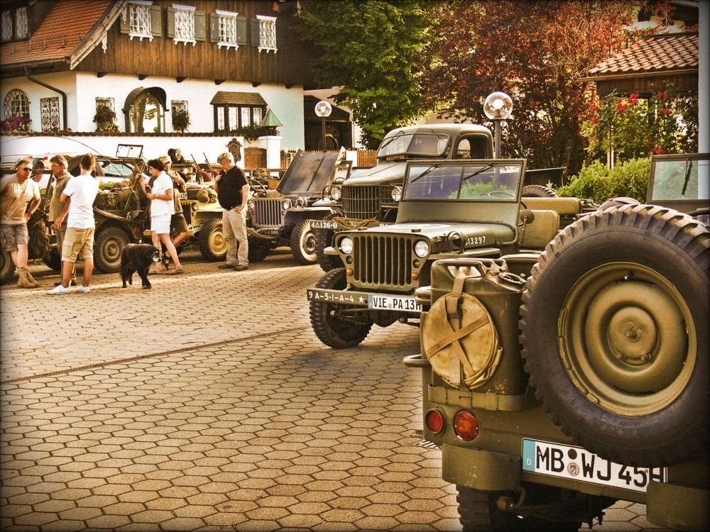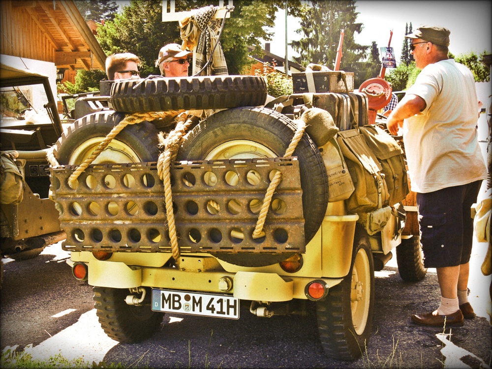 Deshalb möchte ich nochmals darauf hinweisen, dass Willys am Tegernsee der Begeisterung für den Jeep in seiner Urform Rechnung tragen will. Neben dem Willys MB und dem Ford GPW sind natürlich die Hotchkiss M201 eine Ausnahme, die wir durchaus machen. Und, wenn sich ein MA oder ein Bantam-Prototyp einfinden würde, sind sie sicher willkommen. Bei allen anderen bitte ich um Verständnis, dass der allgemeine Aspekt Militärfahrzeuge im Hintergrund steht.